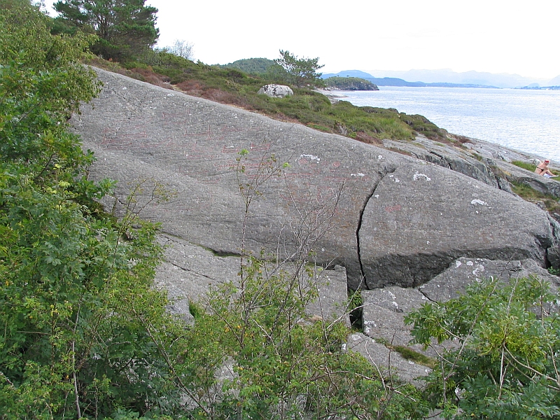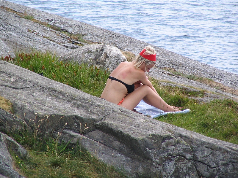 Välillä piti pysähtyä vilvoittelemaan, varpaita liottelemaan ja nauttimaan pientä välipalaa. Keli oli kohtuullisen lämmin. Viereisessä kalliossa oli kalliomaalauksia ja kameralla zoomailin ahkerasti niihin, mutta jos tarkasti katsot seuraavan kuvan oikeaa laitaa, huomaat mitä minä itse asiassa zoomailin ! :) Ei puhuta tästä vaimolle mitään !