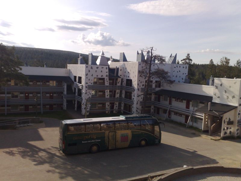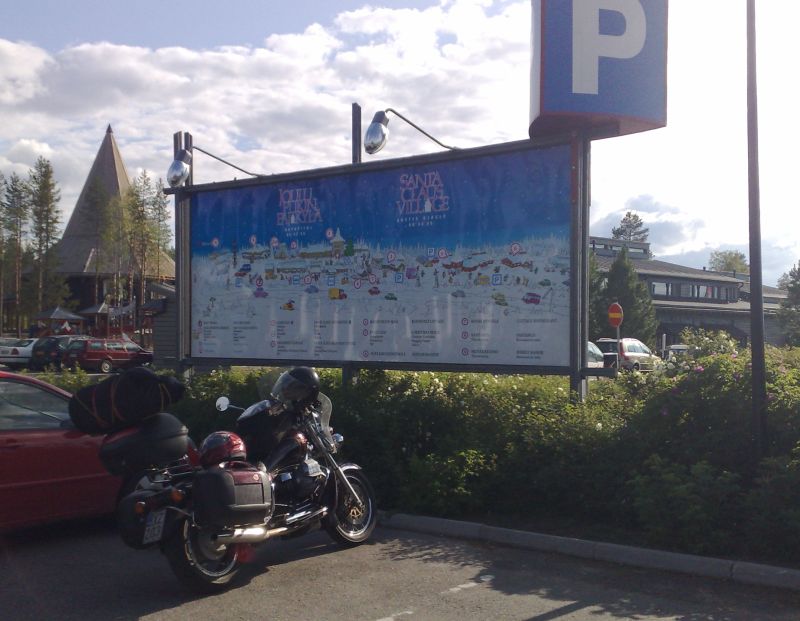Rovaniemellä täytyi tietysti joulupukin pajassa poiketa, siitä jatkettiin vielä Saariselälle, jossa yövyttiin kuvan hotellissa. Se olikin reissun tasokkain yöpyminen, Norjan puolella mentiin taas perinteiseen "kaukopartio" tyyliin omatoimisesti matalalla profiililla. Ensimmäinen ajo-etappi Loimaa - Saariselkä 1118 km