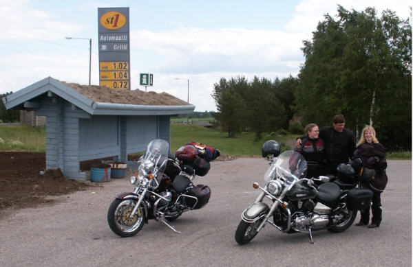 Umeå, oli viimeinen kaupunki ennen kuin tie taas loppui. Ja jossain kaukana häämötti Suomen kotikamara. Umeåsta lähti laiva, Vaasaan. Satama-alueelle tultiin oikein hyvissä ajoin, meinaan kaksi tuntia etuajassa. Jah, siellä tapahtui oikein mielenkiintoinen tapaaminen Norjan Helvetin Enkeleiden jäsenen kanssa. Tosin mielikuva pitkäpartaisesta, isomahaisesta ja mustiin aurinkolaseihin pukeutuneesta jengiläisestä täytyy nyt kyllä rikkoa *virne * Tosin mustat aurinkolasit hänellä oli. Lyhyt pikkuparta ja vaaleat pystyssä olevat hiukset. Laivaan pääsyä odotellessa keskustelu jatkui ja korvaani kantautui muutama huvittavakin asia. Syntyjään mies oli Oulusta, muuttanut Norjaan, mutta kirjoilla hän kuitenkin on Ruotsissa. Toinen huvittava asia oli hänelle sattunut pieni vahinko itse rakentamansa moottoripyörän kanssa. Hänen pyöränsä kun oli hieman viritetty, ja pakoputki normaalia ylempänä, hänen laukkunsa oli siinä pakoputken likellä niin, että kuumat pakohöyryt olivat polttaneet laukun reunan ja hammastahnatuubi oli räjähtänyt laukussa, ja seurauksena oli tietysti se että koko hänen laukkunsa sisältö oli täynnä hammastahnaa ja noh...hieman ylikuumennut hammastahnakin tuoksuu omanlaiselta…J Suomeen hän oli menossa sukulaisiaan tapaamaan, ja sitten kun Suomeen päästiin niin todellakin hänen itse koottu "Harrikkansa" piti aikamoista meteliä mennessään. Vaasassa tankattiin, ja kellokin taisi lähennellä kello 21.00 ja sitten Maalahden suuntaan lähdettiin tavoitteena löytää vielä avoinna oleva mökkipaikka. Campin, Valtatie 8 olikin paikka johon saavuimme, ja paikan pitäjä oli onneksi vielä putiikin puolella jolloin hän tuli avaamaan meille oven. Akateeminen vartti sinne tai tänne, vaikka tulimmekin myöhään saimme hyvää kohtelua osaksemme ja saunakin saatiin lämpimäksi. Saunakin, tuntui kotoisalta ja siellä tulikin sitten oltua pitempään kuin normaalisti viihtyi. Saunasta päästiin sitten uimaan, mutta liukumäkeä ei harmiksemme päälle pistetty vaikka vapaaehtoisia laskijoita kyllä löytyi J. Mökistä täytyy sanoa sen verran, että vaikka päältä se olikin punainen niin sisältä vaaleansininen *HiH *