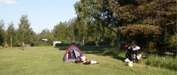 Matka jatkui Suonenjoelle asti, jossa sitten käytiin S-marketissa ostamassa makkaraa illaksi. Kun ostokset oli tehty eteen iski visainen tehtävä: Mihin ihmeeseen tavarat tungettaisiin kun muutenkin oli tavaralaukut piukkanaan vaatteita ym. ostoksille kuitenkin löytyi paikka ja sitten ajelu jatkoi ja lähdettiin etsimään ensimmäistä yöpymispaikkaa… ja yöpymispaikaksi sitten valittiinkin Rauhalahti jossa Late oli käynyt 20 vuotta sitten viimeksi. Hieman alettiin miettiä että onkohan sellaista paikkaa enää ja kyllähän me sekin löydettiin…ja viiden tähden leirintäalue se sitten olikin! Alueella oli tilaa asuntovaunuille ja teltoille sekä vuokrattavia mökkejä. Suuri alue se kyllä oli ja kauniskin Kivilammen rantaan me sitten telttamme pystytettiin. Ranta tosin oli jossain pusikossa metrinpituisten kasvien takana, joten ihan rannalla me ei oltu vaan turvallisen matkan päässä nurmikentällä. Minä ja Late nukuttiin teltassa ja Jaska ja Anu ottivat itselleen mökin. Teltan pystyyn saamis sessio ei kaukaa kestänyt, Jaska, Anu ja Late katselivat vierestä kun itse köhäsin sen. Tosin Anulta sain apua mutta äijillä tuntui olevan jotain tärkeämpääkin tekemistä.