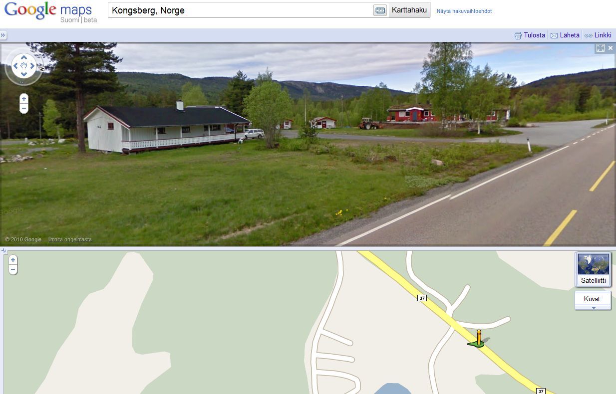 Reissulla käytiin läpi "suosikkikohteitani; lumitie, jäätiköt, geiranger ja peikkopolku" mm. Tässä ensimmäinen majoituspaikka, Google Maps ohjelmasta kaapattu kuva.