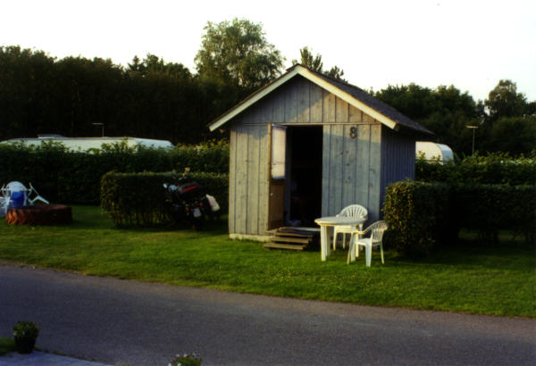 Eka leirintäalueelta löytyykin heti sopiva mökki. Matkaa tuli taitettua Tanskan