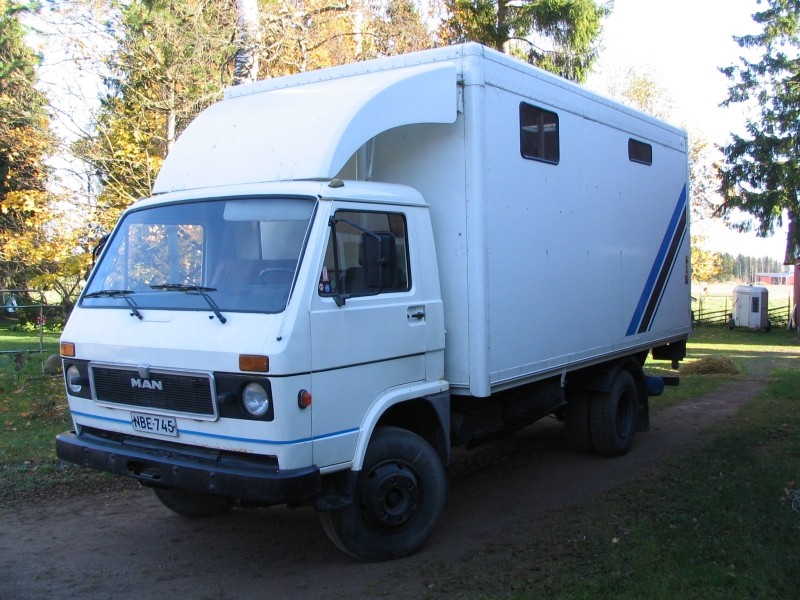 Sitten liitytään tiehen, jota pitkin menomatkallakin kuljettiin, eli Örebro, Västerås, Tukholma ja lopulta tuntia ennen laivan lähtöä Kapellskär. Kilometrejä kertyi päivälle vajaat 800. Laiva lähtee klo 21.45 ja Naantalissa ollaan aamusella klo 6.25 joten nukkumaan ei kovin kauaa ehdi koska heti laivaan tullessa joudutaan syömään seisovasta pöydästä ja heti aamusella lähes jo ennen ylösnousua syyään taas ! Nyt en yhtään ihmettele, miksi niin monet ulkomaanliikenteen rekkakuskit ovat kovin ”mahakkaita”. Paperisota ja tutkimuksetNyt tämä oli helpompaa kuin viimeksi, kun sama ruljanssi oli käyty läpi jo vuotta aikaisemmin. Ministeriöstä ja ETT:ltä lähettivät päivitetyt tuontiohjeet. Muutoksia tuontiohjeisiin oli tullut hyvin vähän, ETT:n tuontiohjeisiin oli tullut lisäys, jonka mukaan myyjien piti antaa todistus siitä, ettei seuraavia kiusallisia tauteja ole koskaan katraassa esiintynyt; Caseous lymphadenitis ja Enzoottinen abortti (Chlamydia psittaci). Muuten kaikki samat tutkimukset (paratuberkuloosi, border disease, leptospira hardjo) + rokotukset tehtiin tanskanpäässä kuten vuotta aikaisemminkin sekä tietysti maedi-visna ja scrapie todistukset piti olla. Tulokset menivät sitä mukaa kuin valmistuivat faxilla suoraan ETT:lle. Lisäksi täyteltiin papereita entiseen malliin täällä suomenpäässä. Paperisotaa on selvitetty perusteellisemmin viime vuoden jutussa tuonnista. Hakumatka 26.- 29.9.2005Valmistelut matkalle taas samoin kuin edelliselläkin kerralla, sillä erolla että tällä kertaa saan kaverin eli Paulan mukaan ja mennään kuorma-autolla. Saimme lainaksi Ypäjältä vanhan Man-merkkisen kuorma-auton vm. 1986. Se on hevoskuljetusauto neljälle, jopa viidelle aikuiselle hevoselle, joten 9 lammasta sopii sinne hienosti.