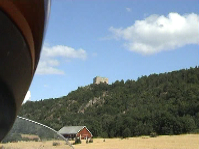 Pääkatu oli mukulakiveä ja rakennukset historiaa huokuvia. Tästäkään paikasta ei ollut allekirjoitteneella mitään tietoa aikaisemmin, aina on tullut hurautettua ohi tuolla ylempänä kulkevaa valtatietä pitkin. Pysähdyksen jälkeen matka jatkui ja heti oikealla puolen ylhäällä näkyi Brahehus, Pietari Brahen v. 1638 alkaen rakennuttaman linnan rauniot, jotka ovat ylhäällä rinteessä, aivan moottoritien vieressä.