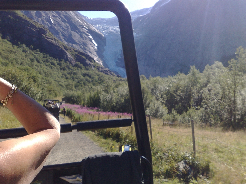 Sunnuntai 27.heinäkuutaSeuraavaksi suunnataan Briksdalsbeenin jäätikölle ja taas mennään John Deere Gatorin kyydillä.