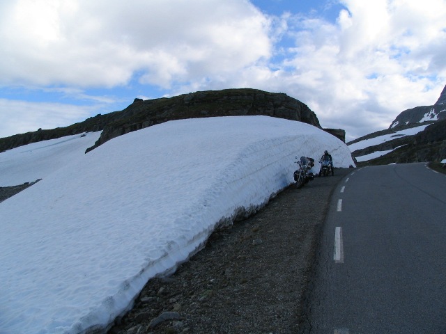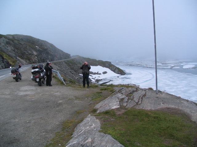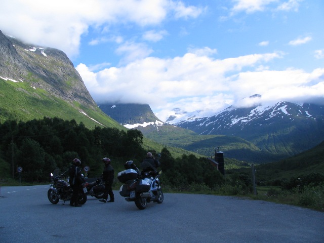 Reissuun lähtivät peräkylän motoristeista mukaan naapurit; Marita ja Ismo. Vaimo oli tottakai mukana ja kuvasi peräpenkiltä digivideokameralla 5 tuntia. Materiaalista tein kahden tunnin roadmovie dvd:n. Ruotsin puolella ei pysähdelty kuvailemaan, ensimmäinen kuva Norjan puolelta.